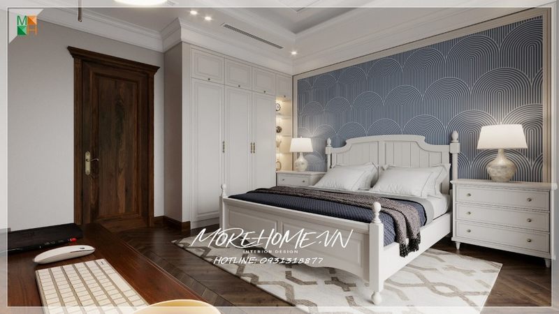 Tủ quần áo âm tường màu trắng hiện đại tiết kiệm được không gian diện tích tiện lợi sử dụng mang thẩm mỹ cao cho căn phòng.